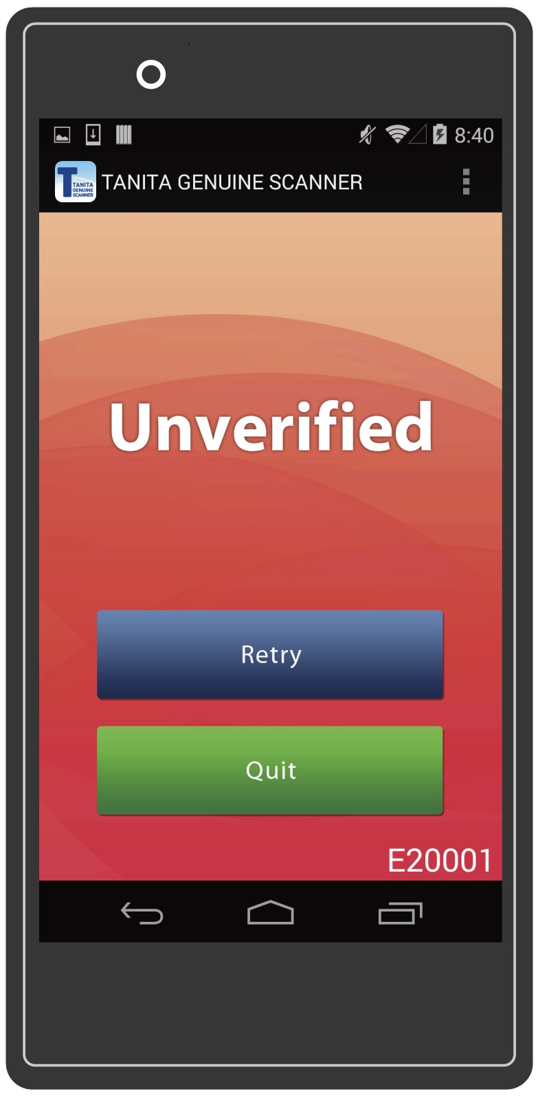 Make sure you’ve purchased a genuine Tanita scale.  The 1479V is now available with exclusive IC tag technology, protecting you from counterfeit products.  Download the free Tanita Genuine Scanner App for your Android device (not available for iPhone) and scan your scale.  If verified, you can be assured you have a genuine Tanita product.