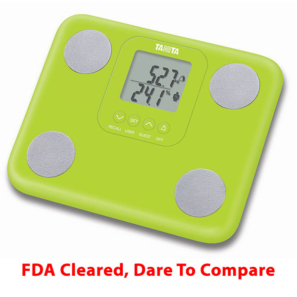 The BC-730 provides a detailed analysis of nine body composition values. Including – Weight, Body Fat, Muscle Mass, Body Water, Bone Mass, Visceral Fat, Physique Rating, Basal Metabolic Rate, and Metabolic Age. It has a weight capacity of 330 pounds (150 kilograms), and operates for greater than two years on four AA batteries (included). Available in four colors – Black, Green, Pink and White.