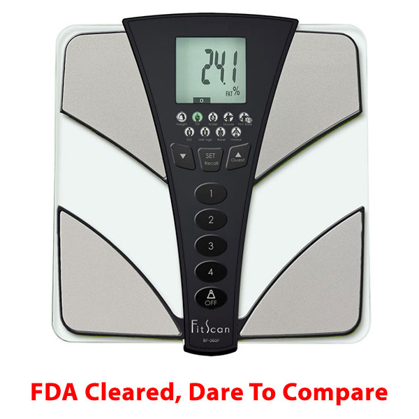 The FitScan BC-585F is a unique and highly accurate body composition monitor. Using Tanita’s exclusive FDA cleared Multi-Frequency Bioelectric Impedance Analysis (BIA) technology, this scale not only measures weight and body fat, it also tells you your muscle mass, body water %, daily caloric intake (DCI), metabolic age, bone mass, visceral fat and rates your physique.