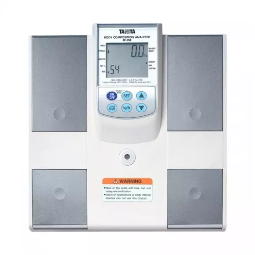 The BF350's self-contained unit displays weight, body fat percentage, and body mass index (BMI). It's an affordable / portable system for mainstream healthcare and fitness providers. By adding Tanita's Health Ware, you have the ability to download this information as well as additional measurements, such as: fat mass, fat free mass, basal metabolic rate, total body water, and impedance, via the RS232 output.