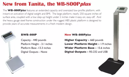 Highest weight capacity, 44 pounds, of all Tanita’s digital pediatric scales
