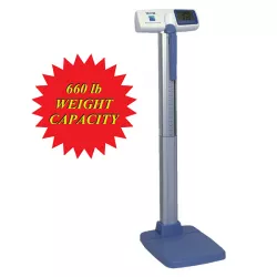 | Enlarge | Market's Highest Capacity, 660 pounds. Dare to compare Hospitals, Clinics, Spas, Gyms, Clubs, this scale is the perfect weighing solution Instant on, no buttons to push Rugged design for years of constant use in high traffic environments Digital outputs are EMR ready Wireless options include ANT and WiFi |