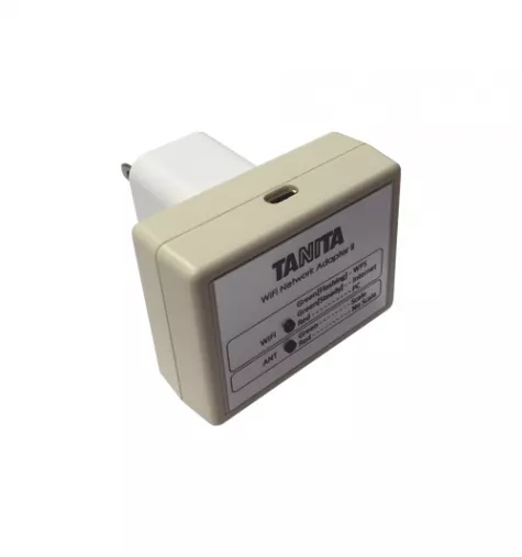 The WiFi II adapter allows any device with WiFi and a web browser, such as Apple’s iPhone, iPod Touch, iPad, or a Wi-Fi equipped PC computer to communicate with a Tanita ANT+ enabled radio wireless scale. Results can then be viewed on a PC (Tanita HealthyEdge or HealthWare software), MAC (Widget), iPhone/iPod/iPad (Tanita HealthyEdge Mobile App), and the Tanita cloud (MyTanita.com). Increases the range of ANT+ enabled products from 30’ up to 200’ or more!