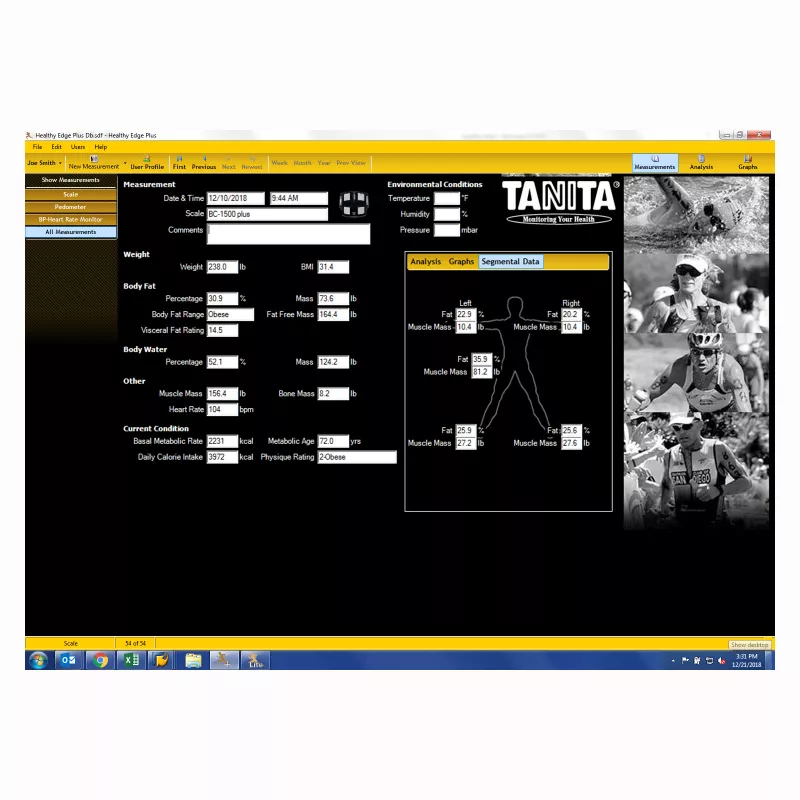 Free software from Tanita, included with all Tanita and FitScan consumer ANT+ radio wireless scales and analyzers. Healthy Edge Lite provides an in-depth tool to record, analyze, and graph, weight and body composition data for up to 8 users. Never before has this much information been available to the consumer.